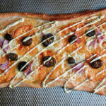 There’s pizza dough? Spread it in a sheet pan, smooth with jam or other toppings, layer on the cheese and bake a catering-worthy appetizer pizza.