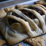 Replace the puff pastry with a can or two of crescent roll dough, phyllo or some plain pie pastry. (Go pre-made for convenience if you have it. If you don’t, pie dough is just flour and fat and seems more impressive than it is difficult.)