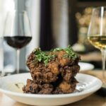New entrees include Asian-inspired fried chicken piled high on the plate atop a fresh Asian slaw and drizzled with Szechuan syrup. The sous vide beef short rib has a Burgundy wine demi-glace, pearl onions, carrots, and Parmesan grits. There is also Chilean sea bass and tuna sashimi.