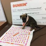 Along with the delivery came Dunkin’ logo bandanas for the dogs and doughnuts for the staff.