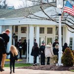 Mourners line up Sunday in Brentwood to pay their respects to fallen McKeesport police Officer Sean Sluganski.@VNDNews @TribLIVE pic.twitter.com/0T0K0lheYs