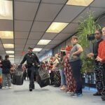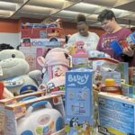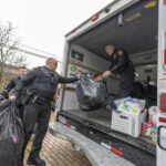 “It’s a little different from when we walked into the hospital, huh? Everyone’s out front cheering and clapping,” Vith said to several officers as they stacked tables with Barbie dolls, Marvel action figures, puzzles, toys and other gifts. “Now you see why so many guys love coming here.”