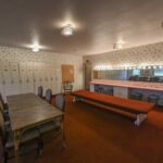 The red brick clubhouse, which originally welcomed only men, features an original spiral staircase, two fireplaces and hanging chandeliers. It was built around 1920.