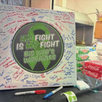 There was a white canvas where people could sign their name and leave short messages of support for Weber. The canvas had a black circle in the middle that featured a green ribbon and the message “His Fight is My Fight. Big Web’s Warriors.”
