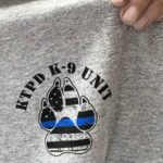 Christine Blystone, fundraiser chairperson and administrative assistant for the Kiski police department, designed the T-shirt and sweatshirt emblems that depict an American flag in the background with two dogs prominently displayed.