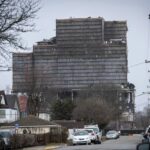 Saturday’s operation will not use explosives. The remaining portion of the boiler house will be pulled down using cables, much the same way a portion of the building was pulled down on Sunday.