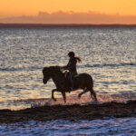 A girl rides her horse at the Baltic Sea in Haffkrug, Germany, early Tuesday. (AP)