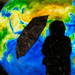 A woman stands next to a glowing ball depicting the Earth at a square decorated prior to Christmas and New Year festivities, during snowfall in St. Petersburg, Russia, Tuesday. (AP)