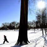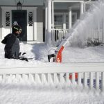 “It’s funny, it didn’t look so bad when I looked out the window this morning,” he said as he shoveled the sidewalk in front of his home in Waltham outside Boston, which according to the National Weather Service, got 16 inches of snow. “But it’s light, so it’s easy to shovel.”