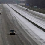 The storm system could cause hazardous driving conditions over a large portion of the eastern U.S. through Monday as the wet roadways refreeze in southern states and the storm turns and moves northward through the Mid-Atlantic states and New England.
