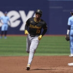 In the sixth, the Pirates took a 6-0 lead thanks to another defensive slip-up, this time by Bichette, who made an errant throw to home plate on a Triolo grounder, allowing Hayes to score.