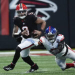 ATLANTA — Michael Penix Jr. won his debut as Atlanta’s starting quarterback, thanks largely to a defense that returned a pair of interceptions for touchdowns, and the Falcons bolstered their playoff hopes by handing the hapless New York Giants their franchise-record 10th straight loss, 34-7 on Sunday.
