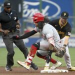 The Pirates nearly answered with a solo shot to the left field corner but Spencer Steer leapt above the wall to snag Michael A. Taylor’s fly ball and rob him of a homer.