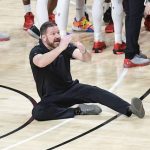 Beard let his frustration boil over in the final minute, yelling at the referees during a timeout before sitting on the floor and making a timeout signal. That’s when one of the refs ejected him.