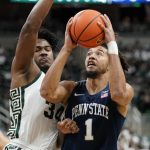 Michigan State took advantage of cold shooting by Penn State at the start of the second half to build a 51-32 lead. The Nittany Lions missed four of their first five shots during the Spartans’ 9-2 run, which was capped by a 3-pointer from freshman Max Christie.