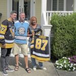 Penguins forward Sidney Crosby delivered gifts for season ticket holders Cassie Montell and Jim Wiltman in Sewickley, Sept. 15, 2025.