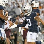 But the second quarter against Minnesota brought the Nittany Lions new life. Jake Pinegar’s field goal was followed by six touchdowns and a flurry of big plays. Parker Washington went airborne for a 35-yard score. Tyler Warren snared a 38-yard touchdown over the middle. Mitchell Tinsley secured a one-handed, 30-yarder.