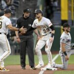 The Pirates got to Perez in the third, forcing him to throw 39 pitches by going deep into counts. Sullivan worked a nine-pitch at-bat to draw a full-count leadoff walk, then showed some speed for a catcher by racing to third on Triolo’s single to center. Oneil Cruz drew a four-pitch walk to load the bases, and McCutchen hit a dribbler past the mound to score Sullivan and tie the game. Reynolds cleared the bases with a triple to the right-center gap, giving the Pirates a 4-1 lead.