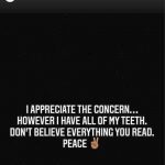 “I appreciate the concern,” he wrote. “However I have all of my teeth. Don’t believe everything you read. Peace.”