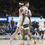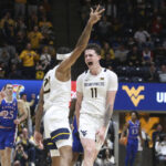 RaeQuan Battle and his West Virginia teammates celebrated on the court amidst a swarm of students as John Denver’s “Take Me Home, Country Roads” blared over the WVU Coliseum sound system.